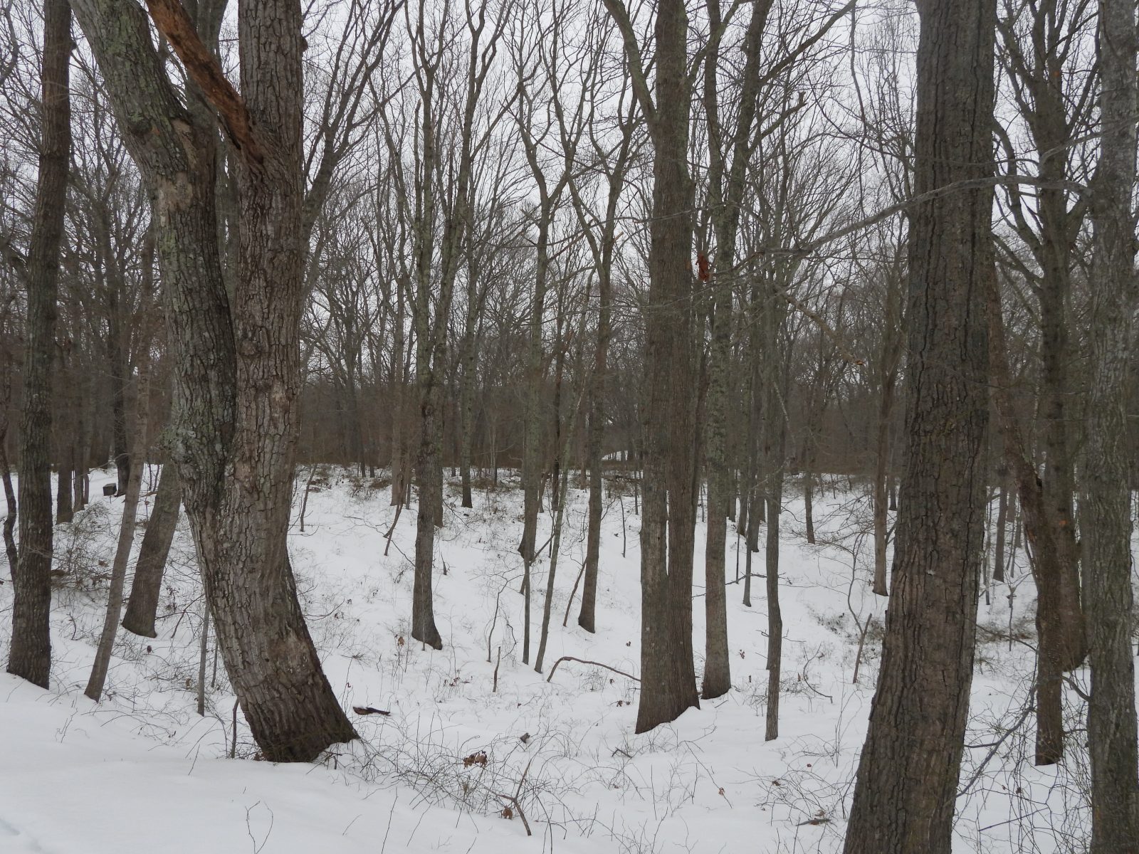 Even though it had not snowed heavily for some weeks, there was still an immense buildup of snow across the whole of the preserve. The exact depth varied anywhere from three to as much as eight inches. Despite slightly above freezing temperatures, the snow was still firm, giving way only when the full weight of my body pressed onto it. This made for a decidedly more difficult hike than the sort I was used to, with only one or two inches of snow on the ground. With an inch or two, there is a satisfying crunch underfoot, but that’s all. It’s a delightful auditory experience that doesn’t impede one’s movements. Three inches or more and suddenly, things change. The snow starts to grip your feet, making each step a much greater effort. Exhaustion seeps in swiftly, and a distance that might normally take fifteen minutes to traverse suddenly takes half an hour. Hiking in deep snow is a workout, and if you don’t have a good pair of boots, or even a pair of high-traction hiking shoes, it can also be exceptionally slippery. So, when faced with deep snow there are two possibilities: either the snow is pliable, and thus sucks you in, making each step a Herculean labor, or it’s frozen over and slippery, meaning you’re at risk of falling. Long story short: hiking in these conditions is dangerous. I’m an experienced hiker, and I wasn’t alone, so I wasn’t at risk. But if you’re less experienced, or you’re alone, there’s a serious danger of falling, hurting yourself, and then succumbing to the frigid weather. It’s a good idea regardless of the conditions to carry a whistle, or some other noise-maker that can alert other hikers to your location, just in case. With so much snow on the ground, though, the likelihood of there being other hikers around is slim, if not nonexistent.